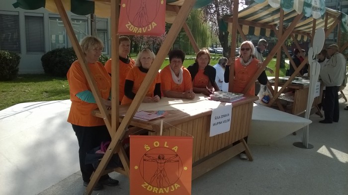 Med ostalimi društvi je svojo stojnico imelo tudi društvo Šola zdravja. Naša skupina Velenje je predstavila vaje, ki jih opravljamo na vsakodnevni jutranji telovadbi. Z besedo in sliko so širili informacije o naši šoli in vabili mimoidoče, naj se nam pridružijo, saj je aktivna telovadba vsak dan potrebna za dobro počutje vsakega posameznika. Zaradi atraktivnosti predstavitve so bili že v naprej povabljeni na vse ostale dogodke v zvezi z zdravjem, ki jih bo organizirala mestna občina Velenje.