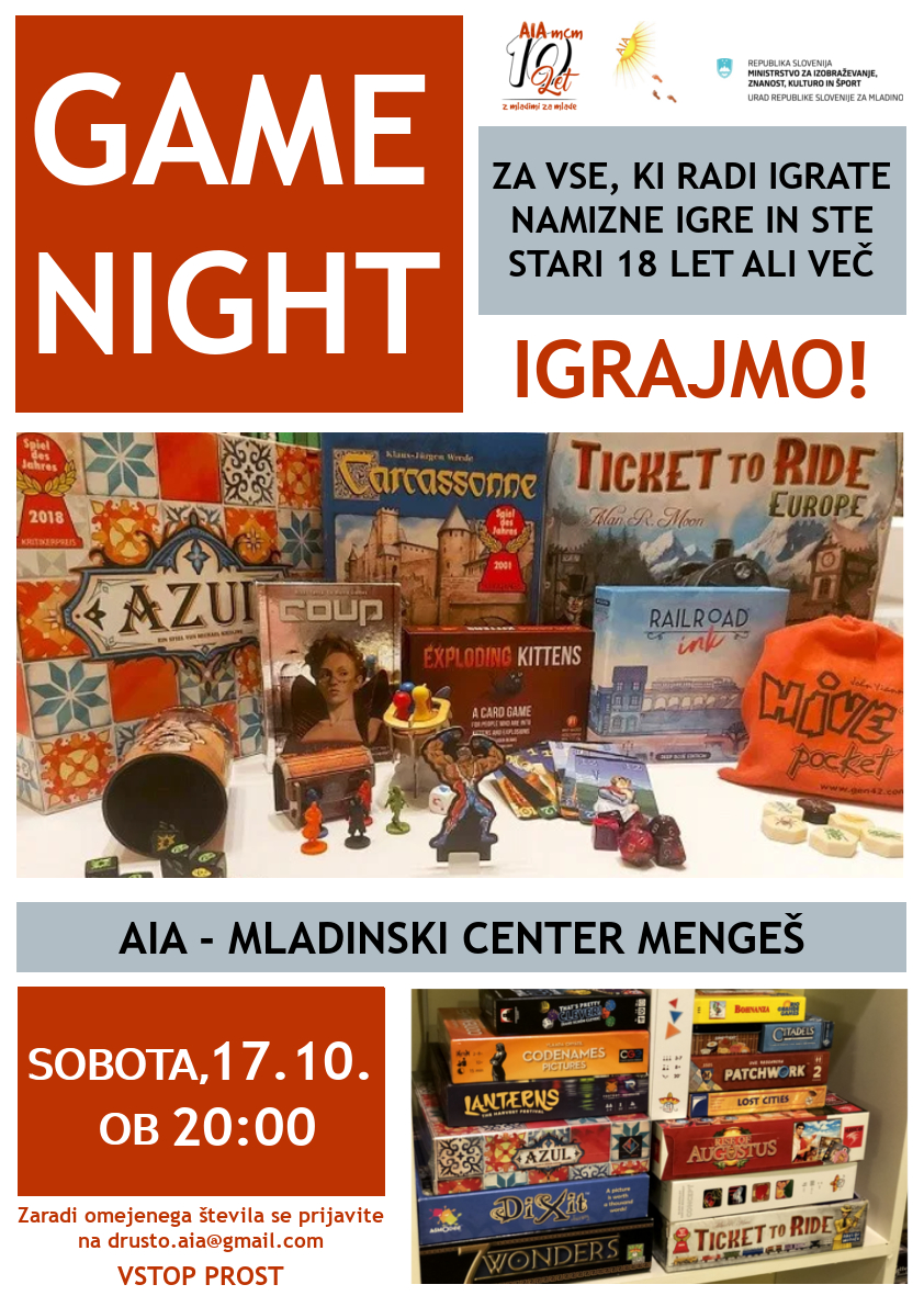 Vabljeni ste vsi, ki radi igrate namizne igre in ste stari 18 let ali več.