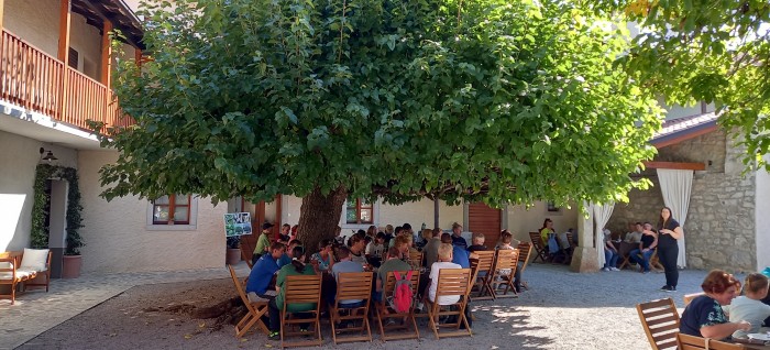 Nato smo se odpeljali na degustacijo do pršutarne Ščuka, ki je del družinskega posestva v vasi Kobjeglava na Krasu. Posedli smo se pod murvo, ki z mogočno krošnjo v obliki dežnika predstavlja simbol posestva. Ob prijetnem klepetu smo poskušali ponujene dobrote. Prijazni gostitelji so nam pripravili ogled pršutarne in nam preko videa prikazali postopek izdelovanja in sušenja pršuta. Neokrnjena narava in kraška klima omogočata zorenje na naraven način brez dimljenja mesnin. Po želji smo se v trgovini založili z njihovimi dobrotami.